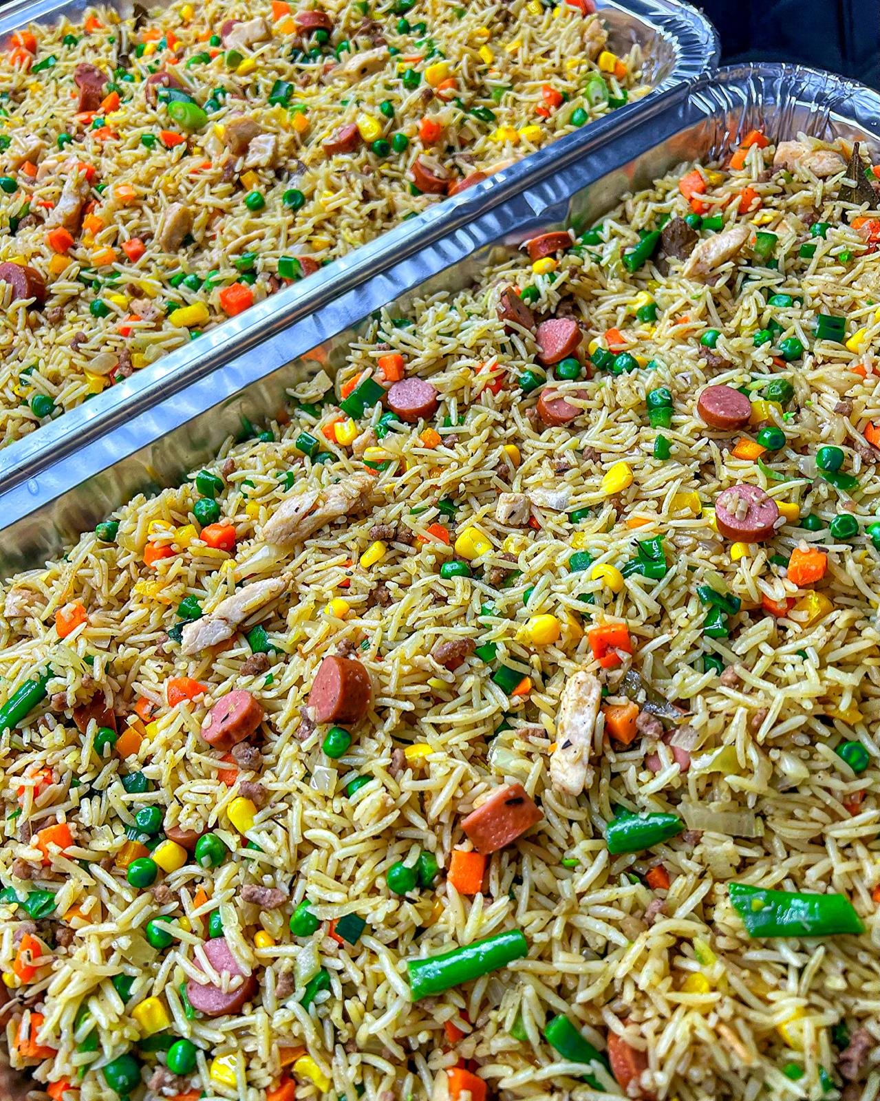 We cook with fresh vegetables locally sourced from farmers and authentic spices from Nigeria.