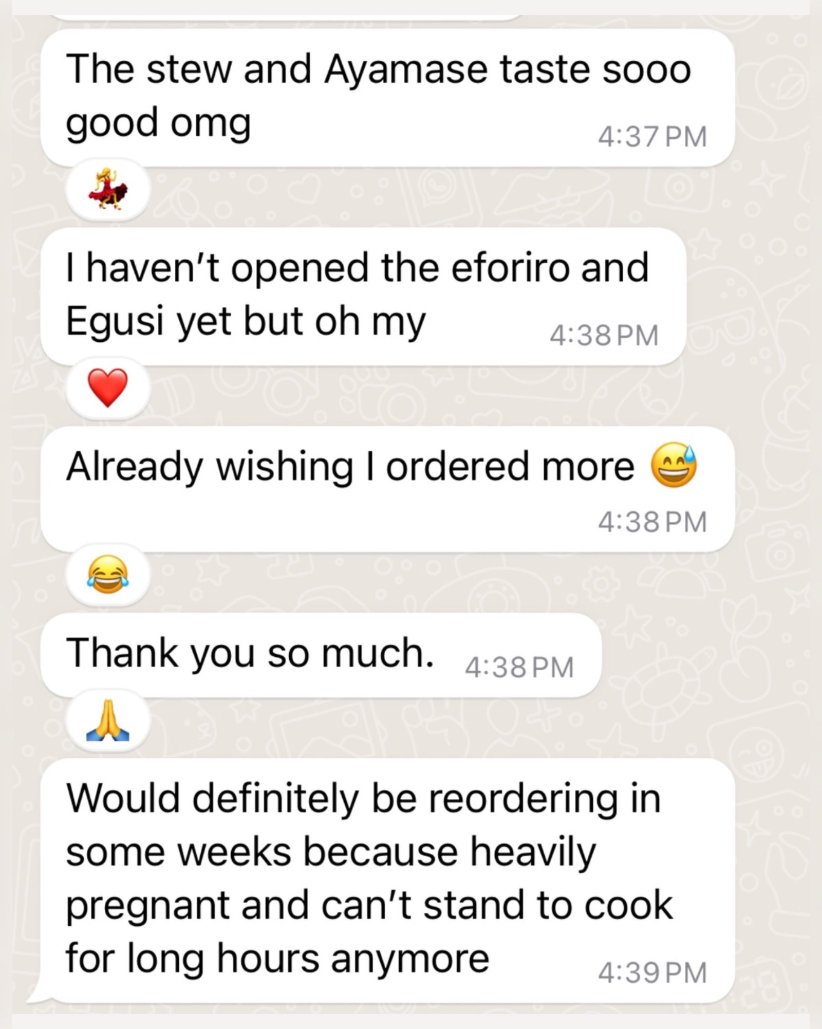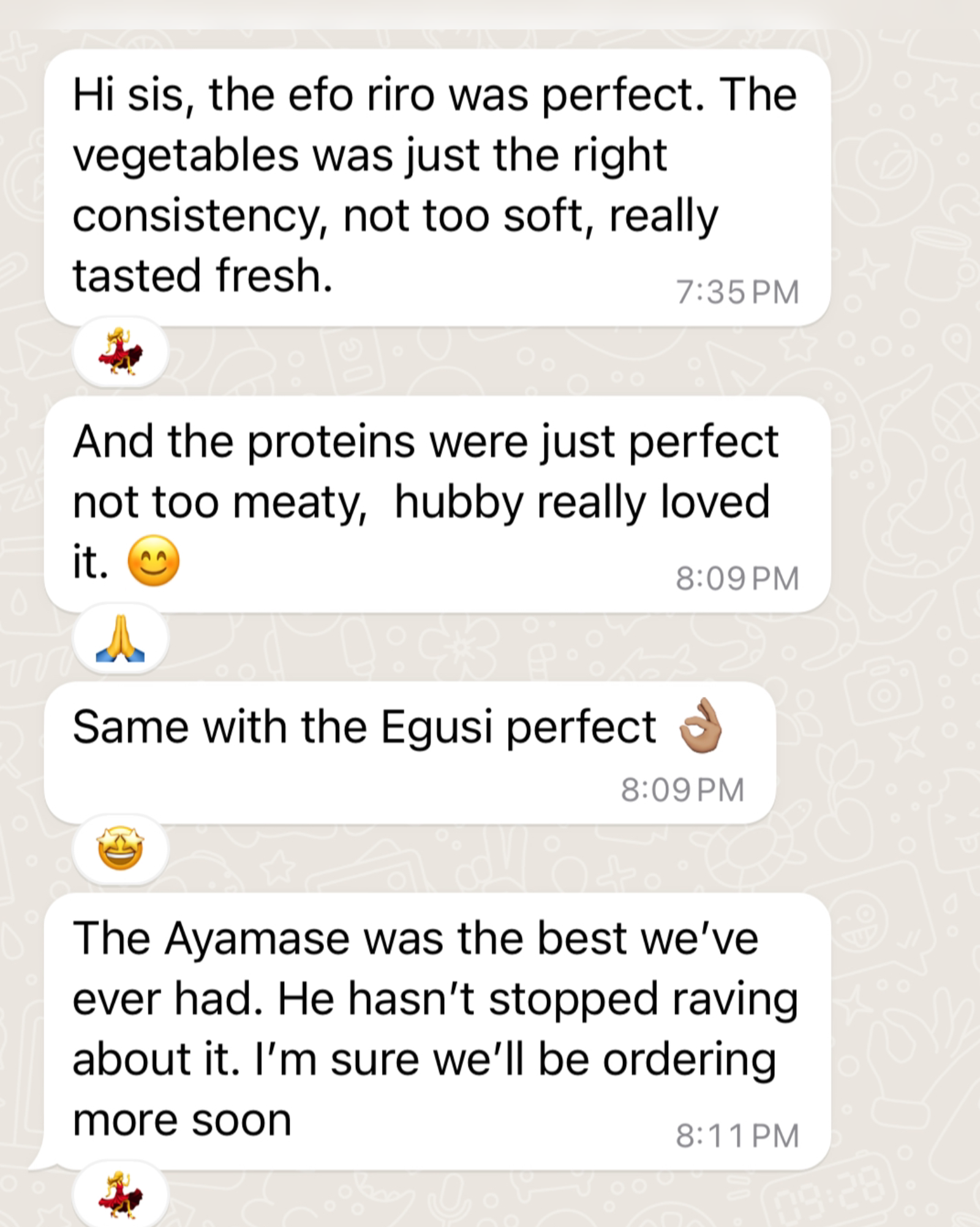 Cooking good quality, delicious Nigerian goods can be very tasking especially when coupled with long working hours as a busy mum or busy professional. We decided to bridge the gap by providing the freshest authentic ingredients from Nigeria to cooking premium quality authentic Nigerian meals in our 5-star hygiene-rated kitchen and also delivering them to doorsteps across the UK.